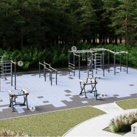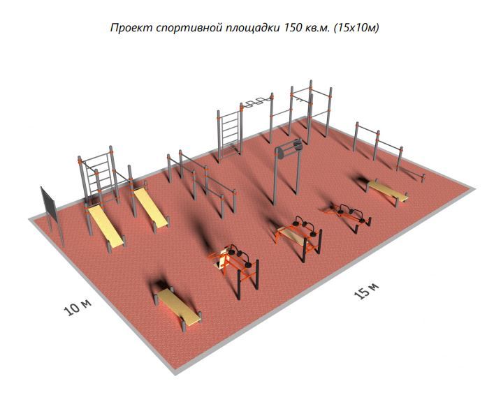 Все металлические элементы оборудования имеют порошковое покрытие, которое защищает от коррозии, УФ-излучения, механического воздействия и перепадов температур, позволяя эксплуатировать уличный комплекс круглый год во всех климатических зонах, и устанавливать спортивный инвентарь в таких местах, как: