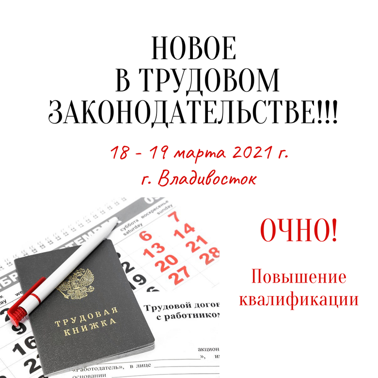 Предлагаем вам курс повышения квалификации по современному трудовому законодательству, который будет полезен менеджерам по персоналу, бухгалтерам, руководителям малого бизнеса, налоговым консультантам. Узнайте все последние изменения в трудовом законодательстве, получите практические рекомендации от эксперта и практикующего специалиста в сфере трудового законодательства и кадрового делопроизводства!