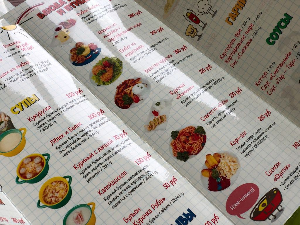 Изготавливаем меню для различных заведений общепита: от кафе и закусочных до баров и ресторанов. Благодаря возможностям и опыту, беремся за создание одностраничных меню формата А3 и А4 в ламинации или без нее, меню-книжек, бумажных меню на доске и тайбл-тентов. Каждое меню для каждого заведения разрабатывается индивидуально.