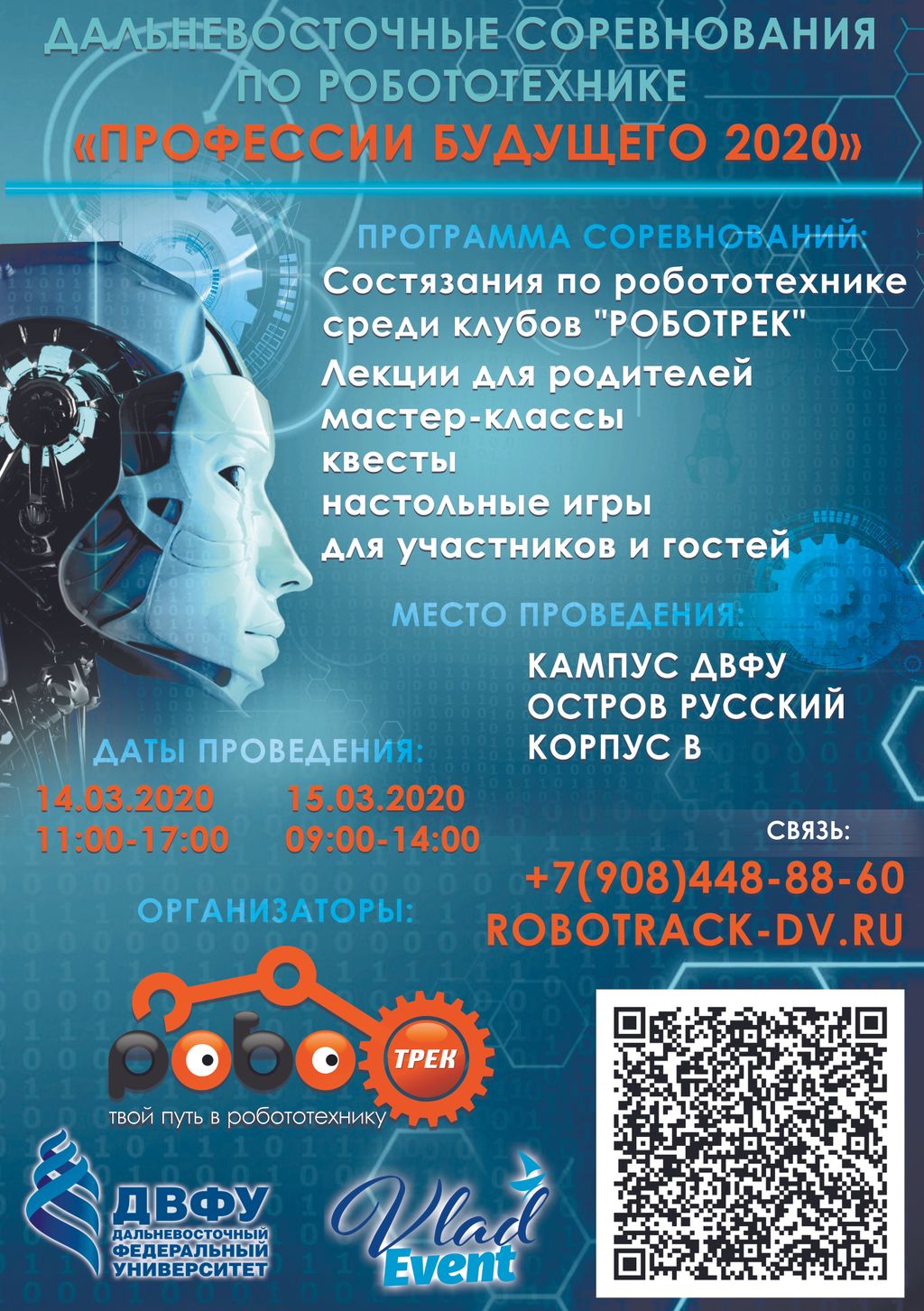 Если Ваш ребёнок ещё не знаком с миром Робототеxники, то у Вас есть прекрасная возможность это исправить, посетить вместе Дальневосточные соревнования по образовательной робототехнике "Профессии будущего 2020".