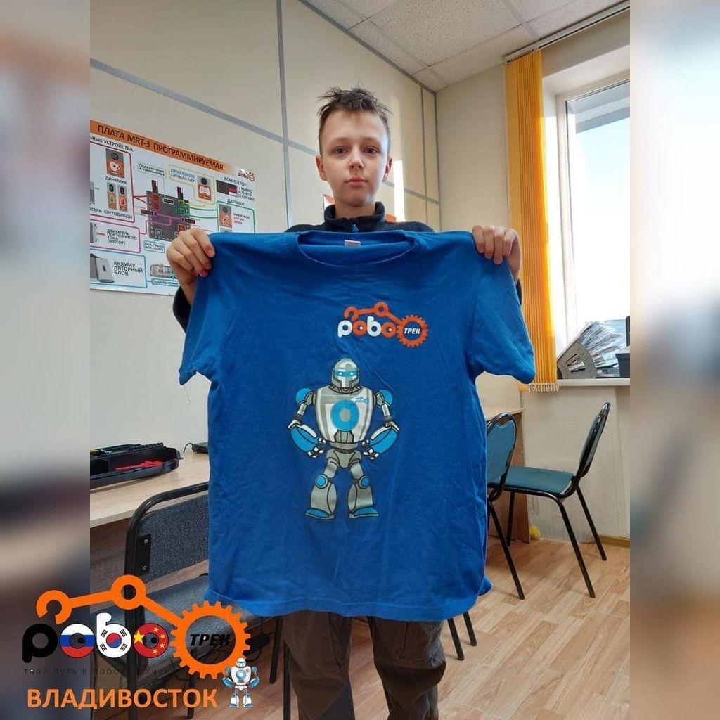 - три значка с роботами можно обменять на футболку.