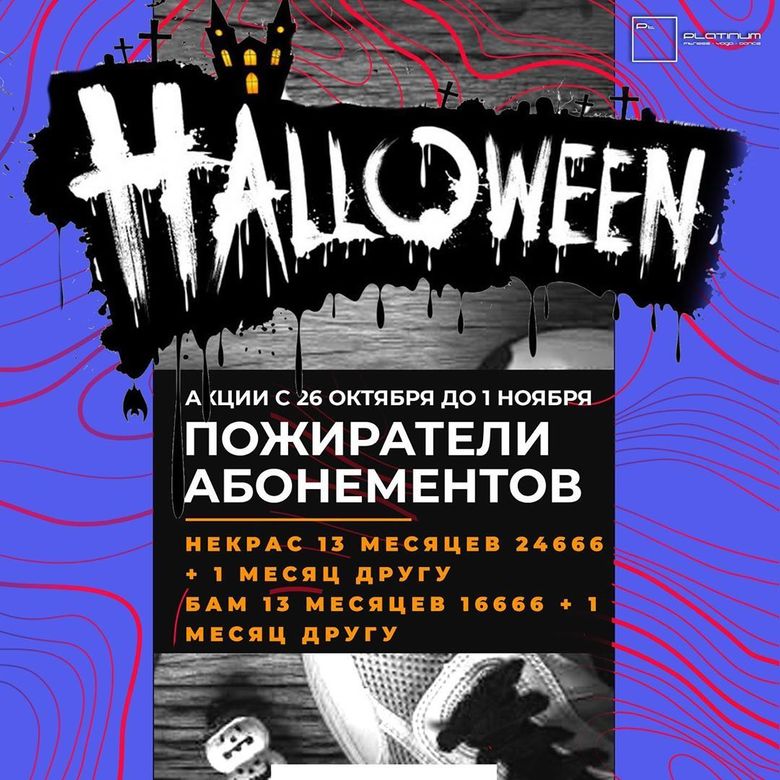 В честь Дня всех святых или Хэллоуина вас ждет пугающе низкая цена на годовые абонементы в фитнес-клубах Platinum.