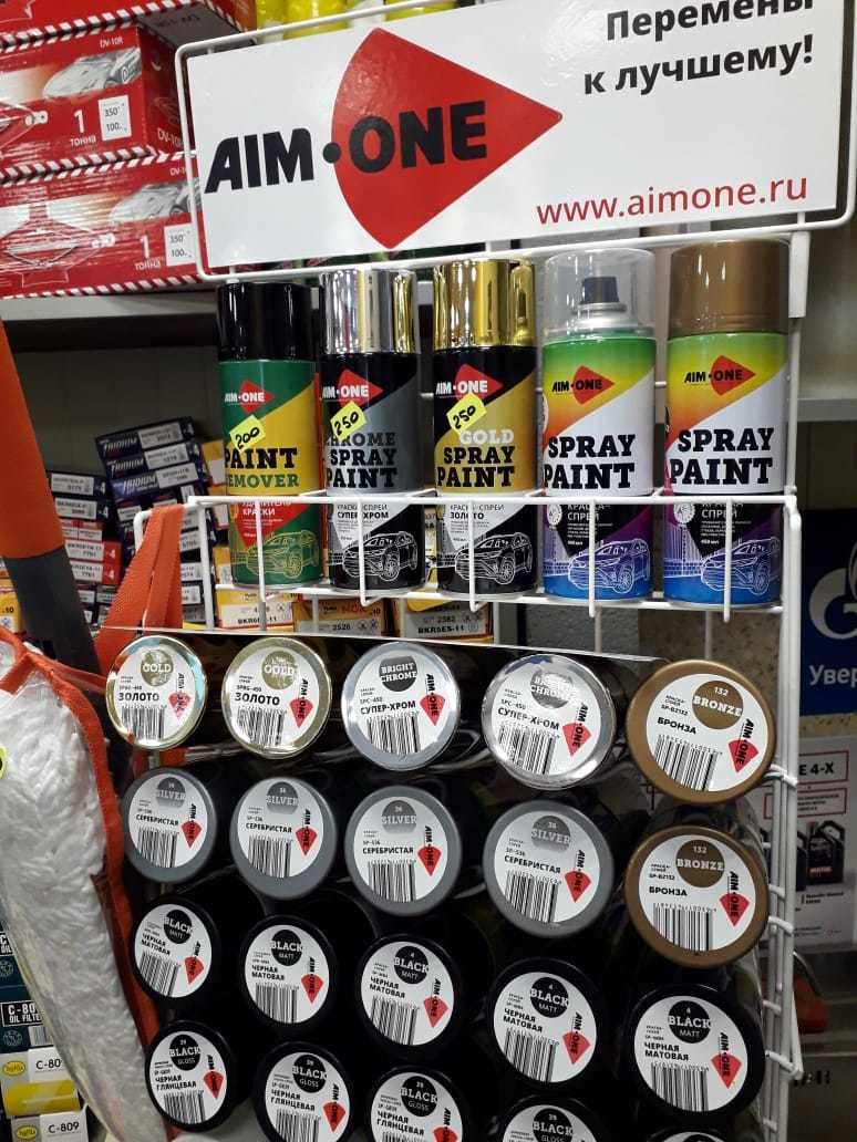 "AimOne" - акриловая спрей-краска, предназначенная для финишного покрытия изделий из дерева, стекла, пластика, керамики, металла. Отлично подходит для окрашивания и реставрации автомобилей.