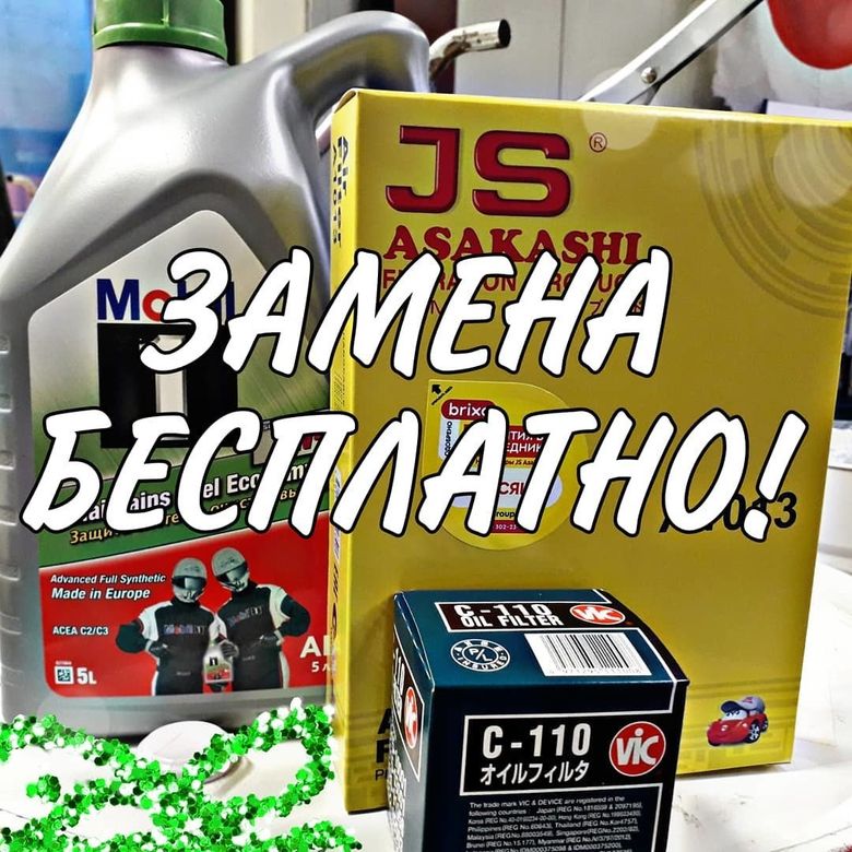 У нас действует акция на бесплатную замену масла ДВС. При покупке синтетического масла и двух фильтров (воздушного и масляного) - замена масла в двигателе в подарок!