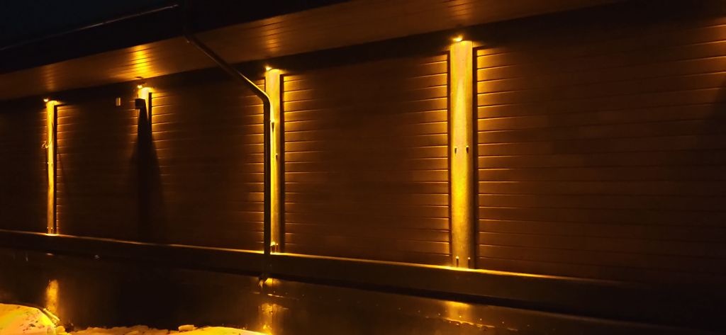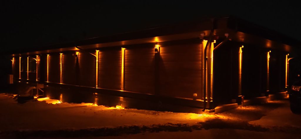 После выполнения работ дом преобразился. С помощью освещения мы подчеркнули декоративную функцию сооружения и обеспечили безопасное и комфортное передвижение по прилегающей территории в темное время суток.