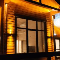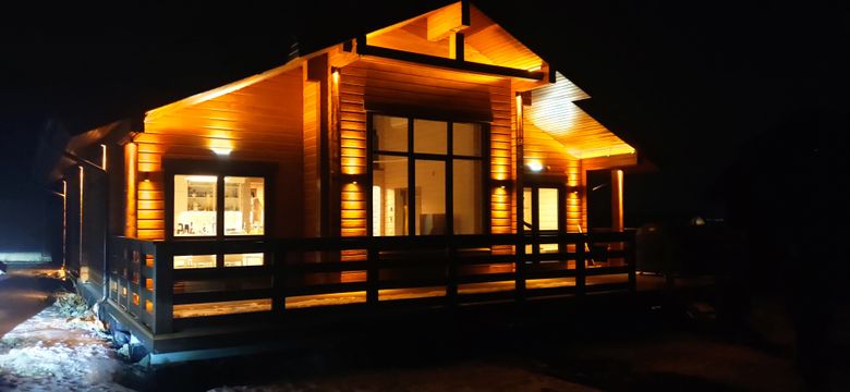 Компанией "Ледекс" была выполнена работа по освещению коттеджа с использованием светильников, безопасных для деревянного дома: