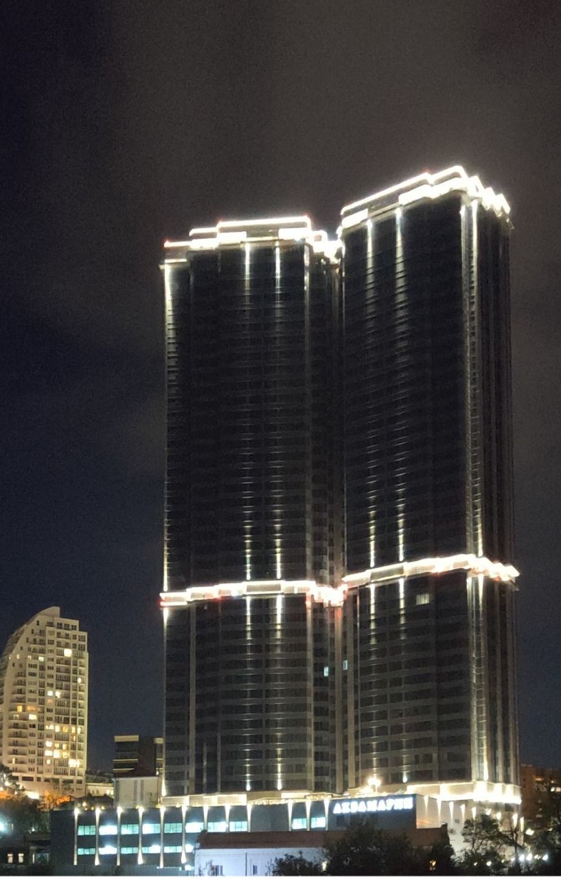 Компанией "Ледекс" был завершен объемный комплекс работ по освещению фасадов и придомовой территории ЖК Аквамарин.
