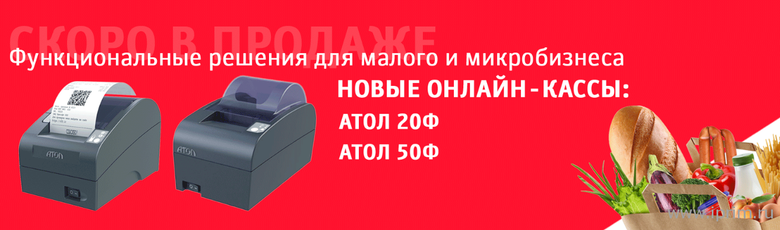 Предлагаем вашему вниманию новинки, поступившие в продажу: ККТ АТОЛ 50Ф и ККТ АТОЛ 20Ф.