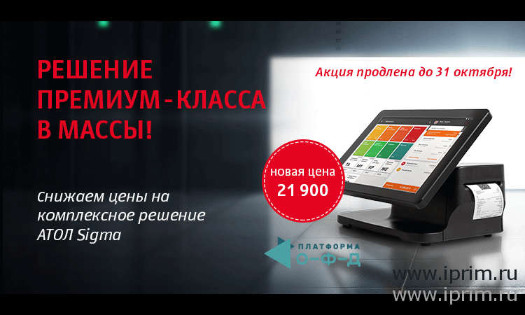 Со 2 июля по 31 октября 2018 автоматизация с «АТОЛ Sigma + Qasl + ОФД» становится еще выгодней.
