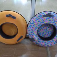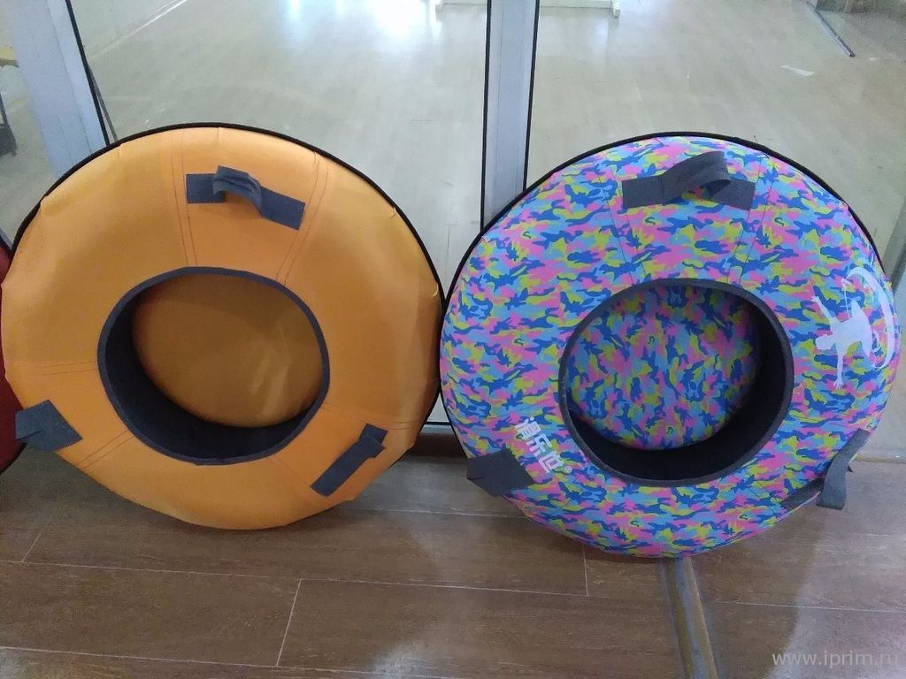 Материал тюбинга - брезентовая ткань. Для комфортного катания с горки тюбинг оборудован ручками, за которые можно держаться. Все швы качественно прострочены кевларовыми нитками. Выдерживает вес до 250 кг.