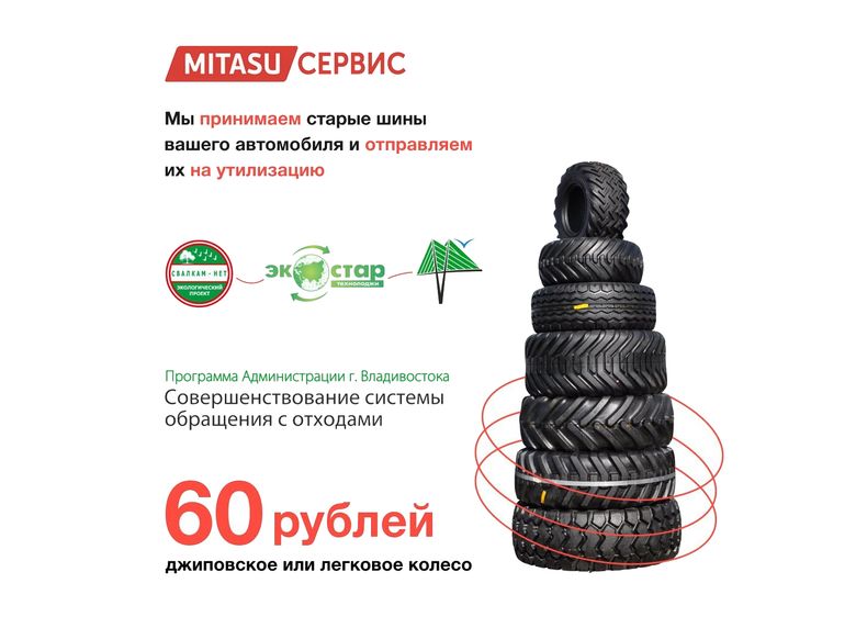 Давайте сделаем наш город чище – сдавайте старые шины на утилизацию в @mitasuservice по адресам ул. Днепровская, 100 или ул. Дальняя, 2.