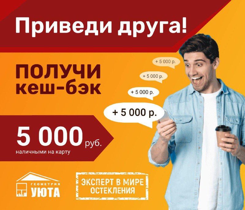 Хотите сэкономить и помочь друзьям обустроить дом? У нас для вас отличное предложение! Приводите друзей, которые хотят остеклить балкон или установить новые окна, и получайте кэшбэк 5000 рублей за каждого нового клиента!
