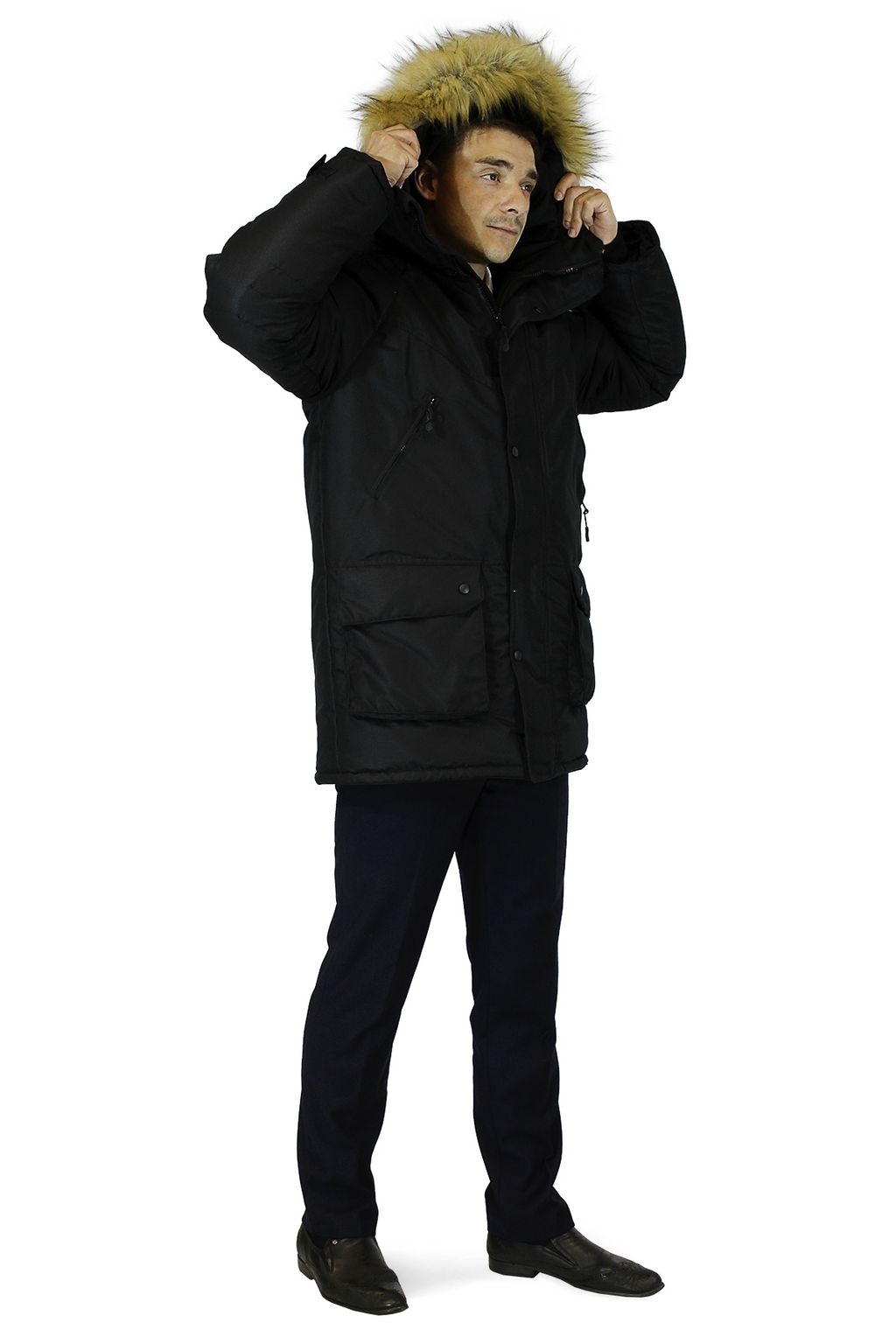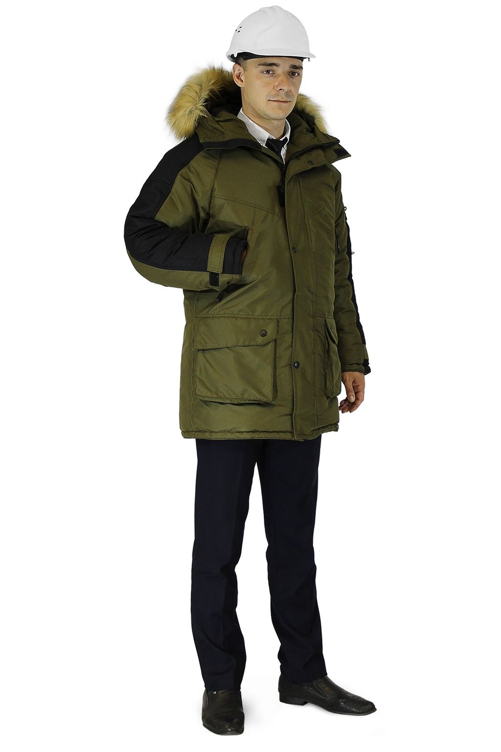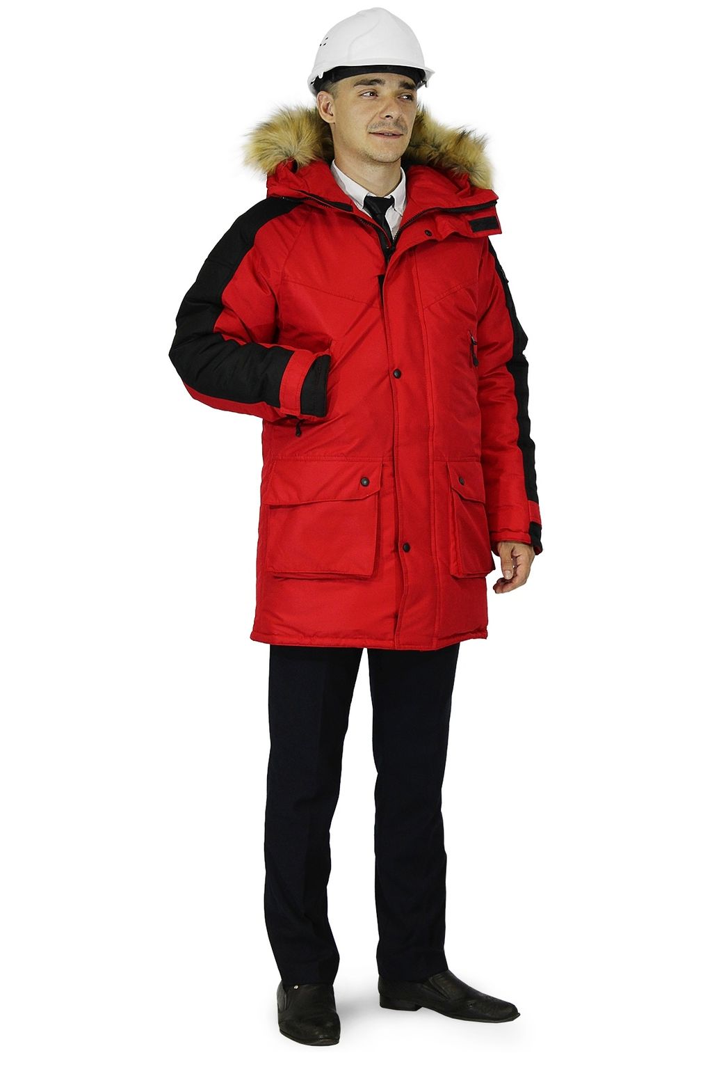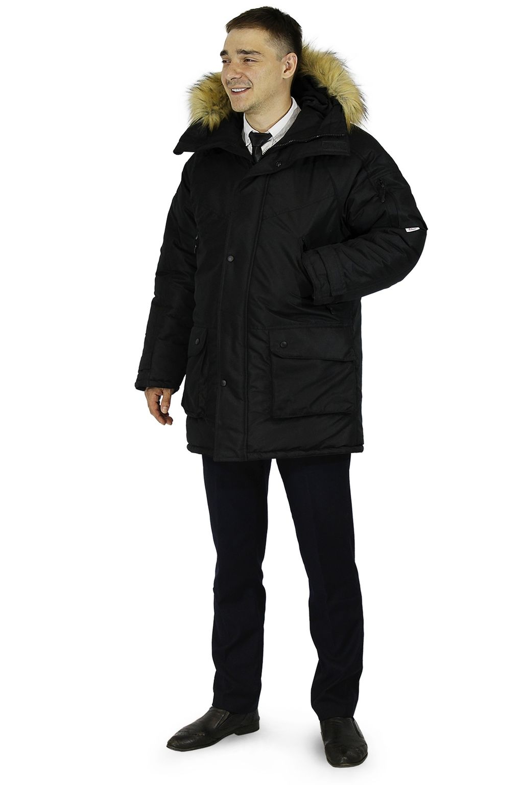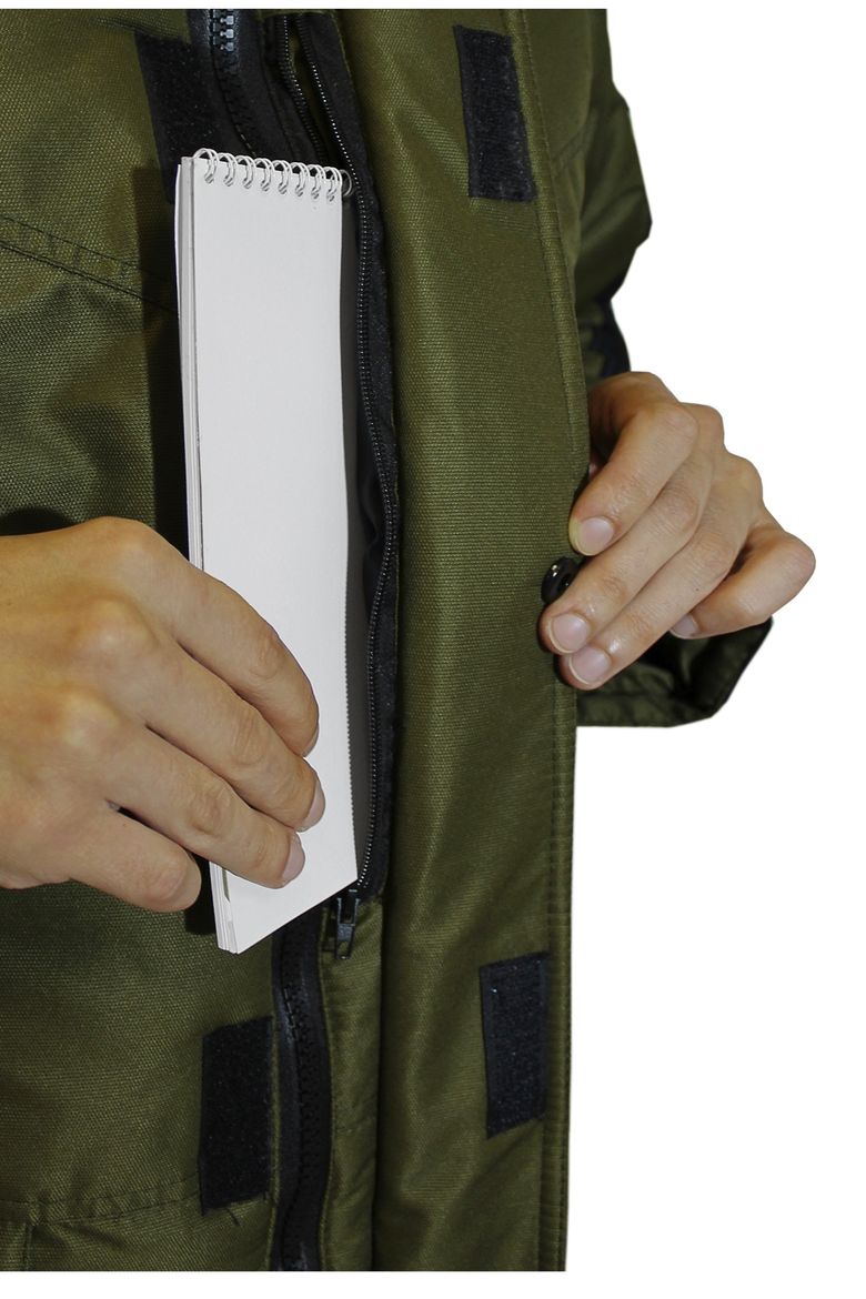 Куртки "Премьер" изготовлены из ветрозащитной дышащей мембраны с водоотталкивающей ТPU отделкой. Подклад из 100% стеганного полиэфира. Обладает застежкой на двухзамковую молнию. На капюшоне съемная опушка из искусственного меха под енота. Есть нагрудные и боковые карманы, утепленные флисом, накладной карман на левом рукаве. Также есть внутренние карманы, подходящие для документов формата А4.