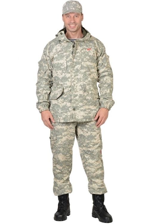В наличии костюмы "Горка". Демисезонные модели цвета КМФ пустыня и туристические модели цвета хаки, утепленные флисом; зимние модели цвета хаки, утепленные синтепоном. Демисезонный костюм "Хантер" с подкладкой из флиса цвета КМФ мишень. Все костюмы состоят из куртки и брюк, пошиты из качественных и практичных в природных условиях материалов: палатка, полиэстер. Размерный ряд - с 88-92 по 120-124. Все костюмы подходят не только для охоты, но и для рыбалки и туризма.