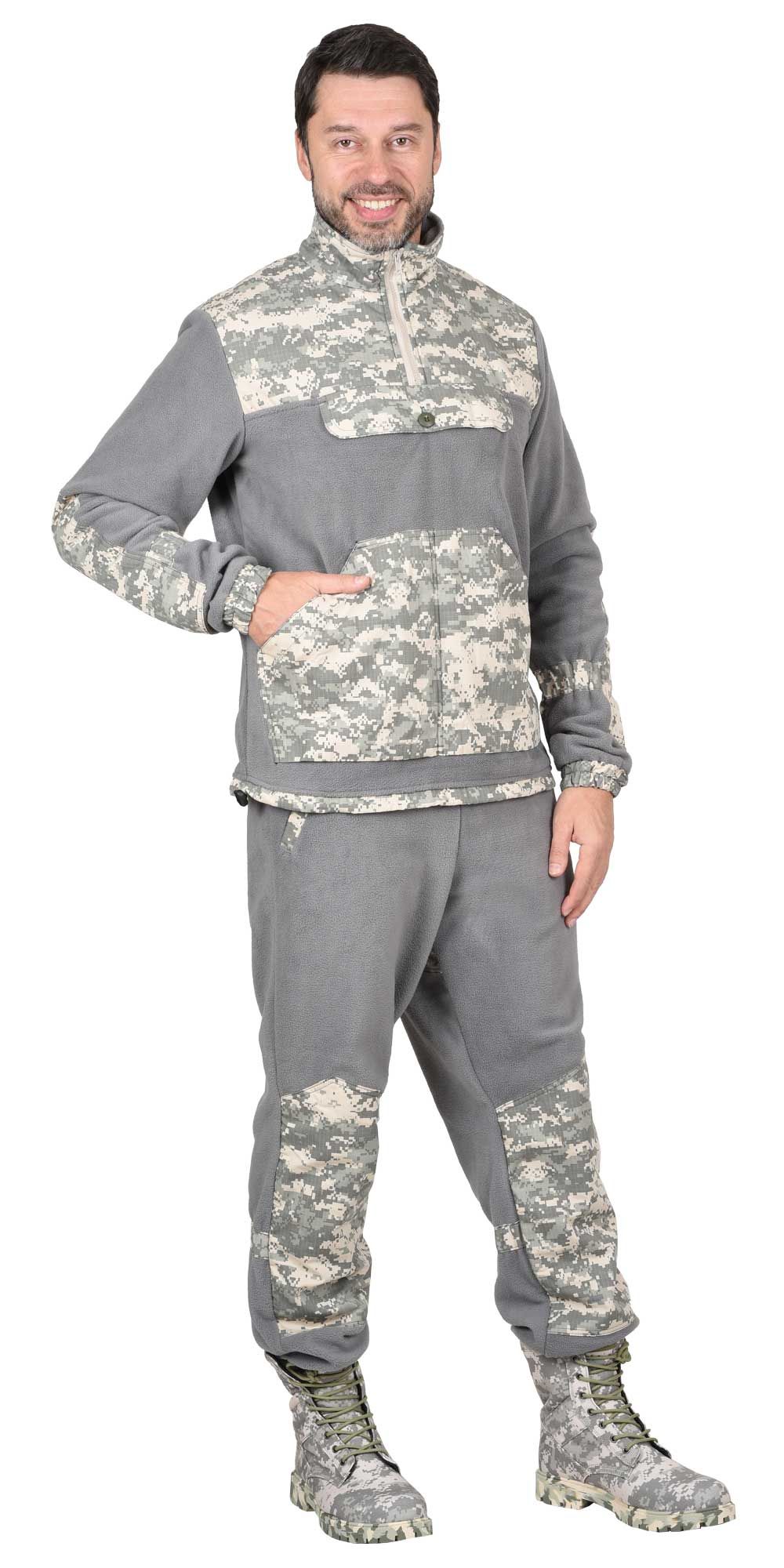 - летний флисовый костюм "СИРИУС-ФИШЕР" с отделкой КМФ Пустыня, цвет - серый.