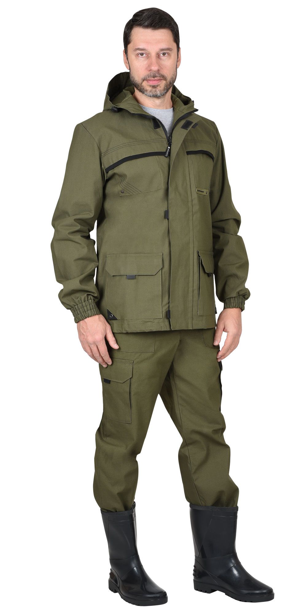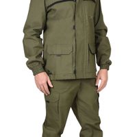 - летний костюм "СИРИУС-ГЕО" из куртки и брюк в расцветке хаки, материал - полотно палаточное (ВО, 100% х/б, 250 г/кв.м.);