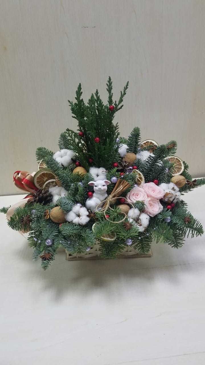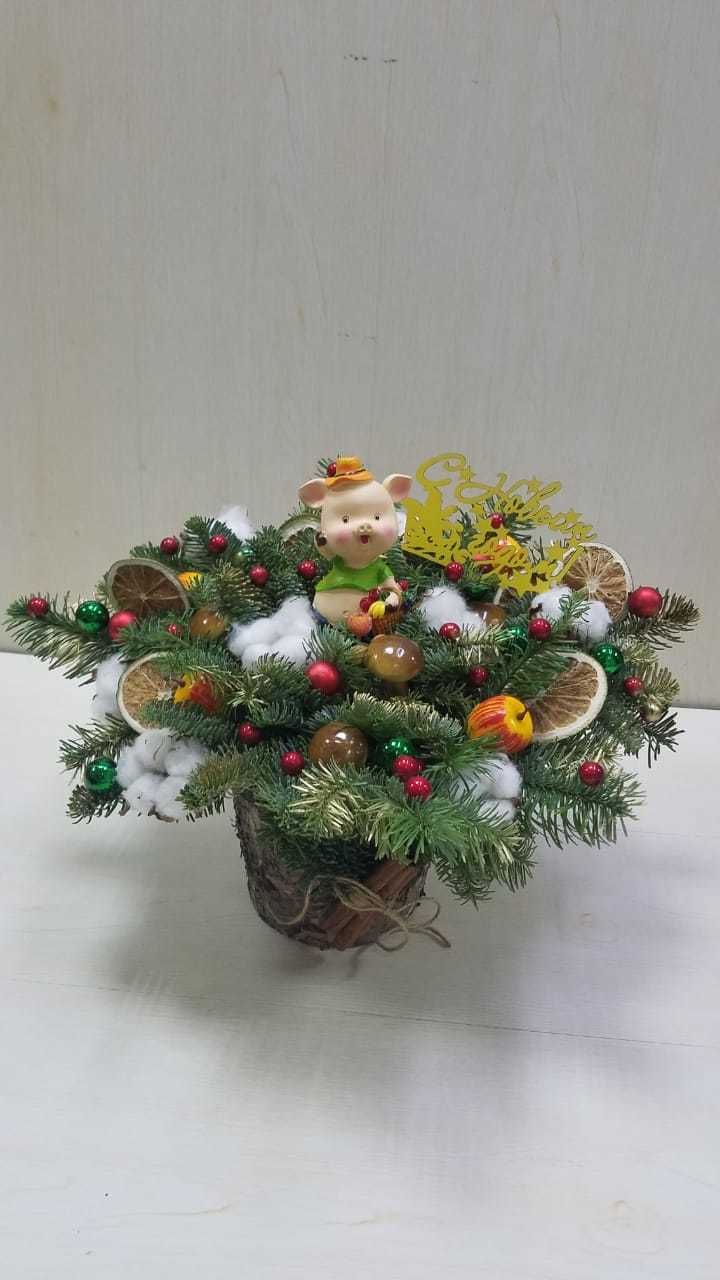 Принимаем заказы на подобные новогодние композиции в любом цвете, в различном декоре или вообще без декора, чтобы вы сами со своими детками могли украсить новогоднюю ароматную красавицу.