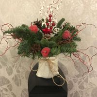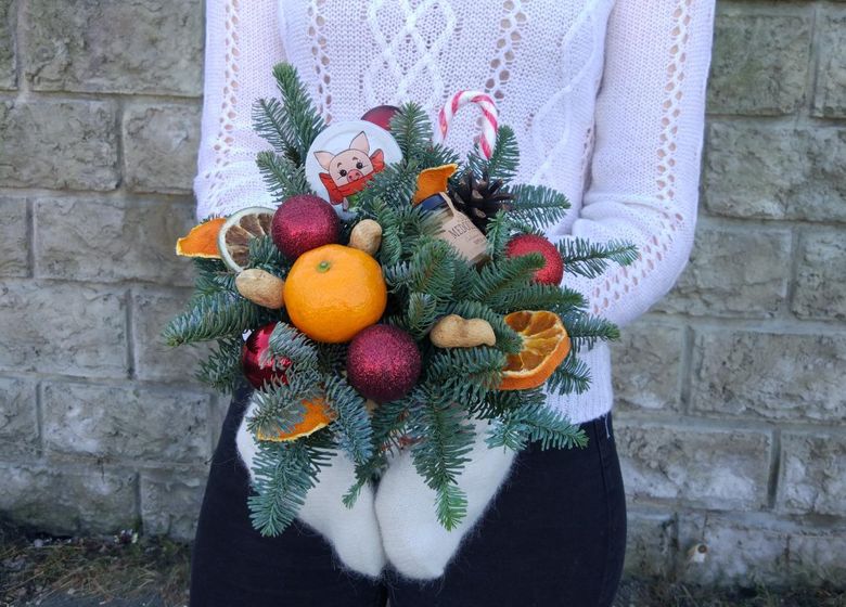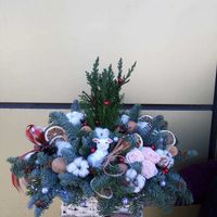А Бутоньерка уже вовсю наполняет дома, квартиры и офисы новогодними запахами натуральной хвои, сушеных мандаринов и корицы. Мы сделаем для вас интерьерные композиции из натуральной пихты Нобилис, нескольких сортов шишек и забавных штучек - бантиков, шариков, вложим очаровательные магниты с символом года.