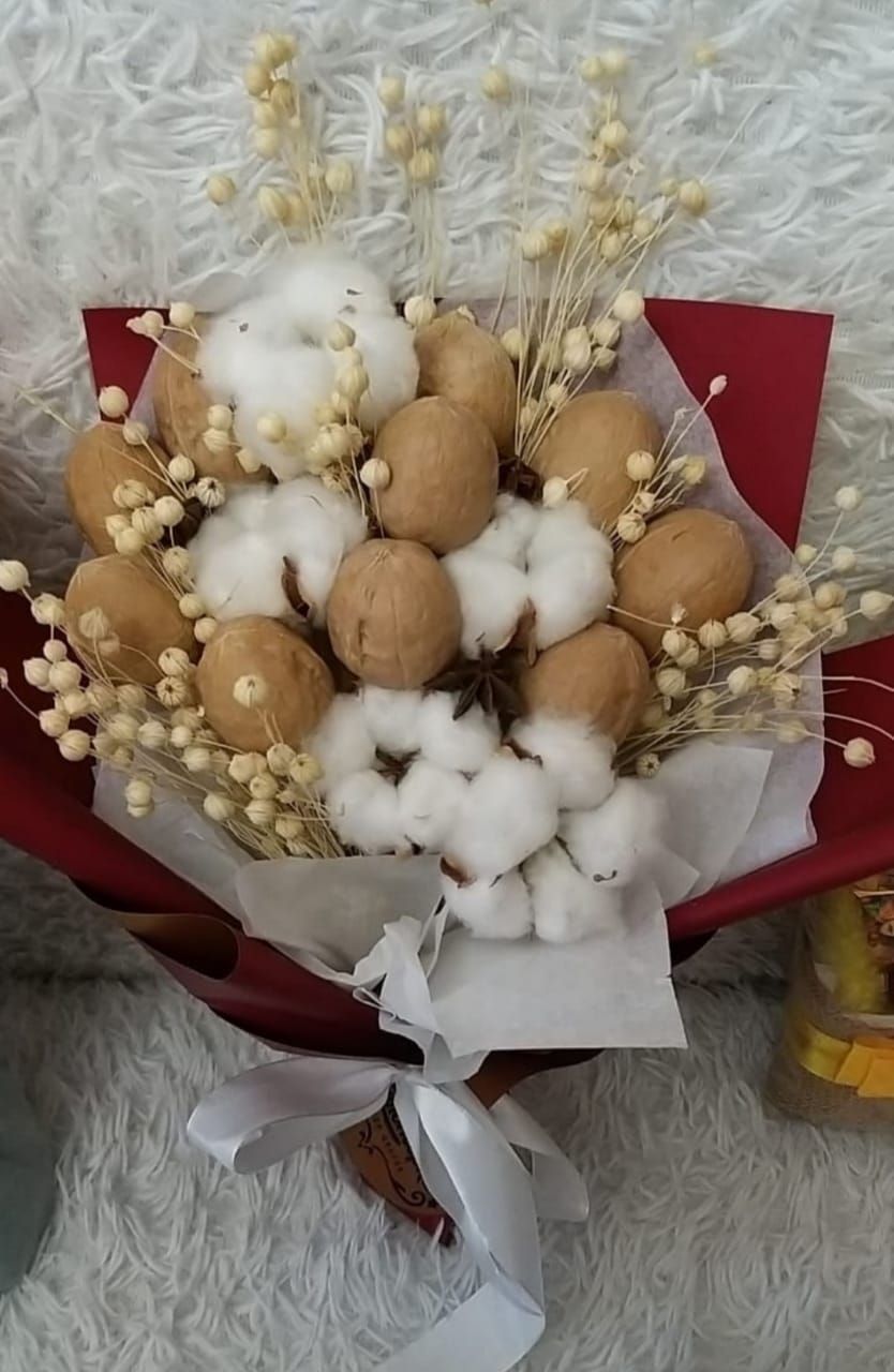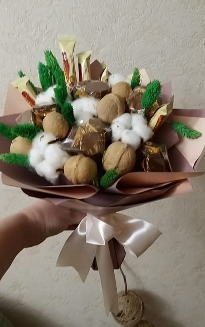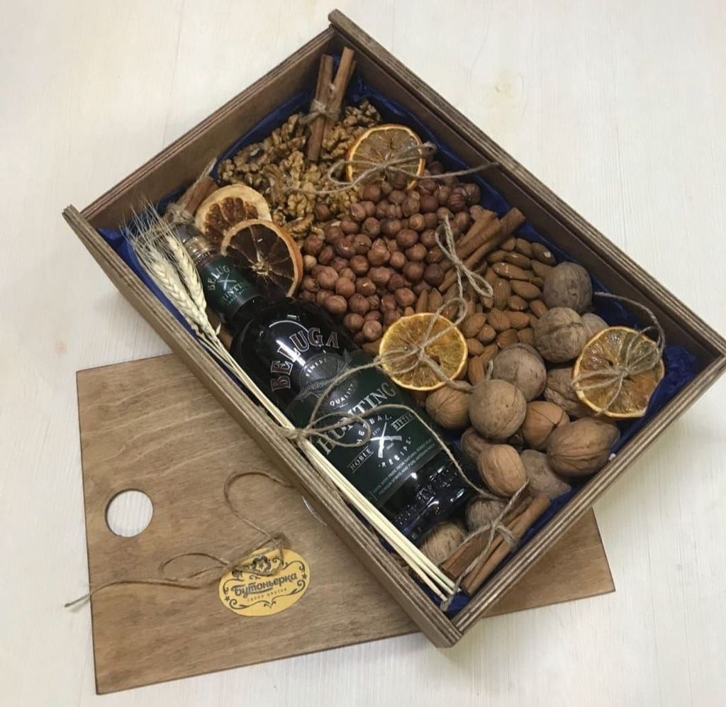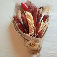 Однако наши мужчины цветами не избалованы и вместо радости в ответ на такой подарок есть шанс получить недоумение. Чтобы этого не случилось, используйте цветы исключительно как декор к настоящему букету, который принесет радость любому мужчине: букет из колбас и сыров, букет из орехов и цитрусовых, из пенного и закуски из морепродуктов. Звучит привлекательно?