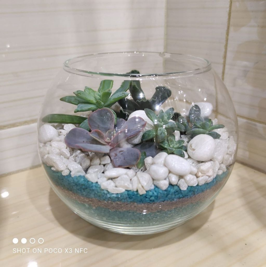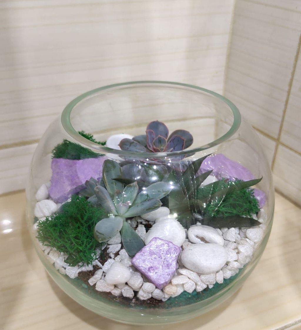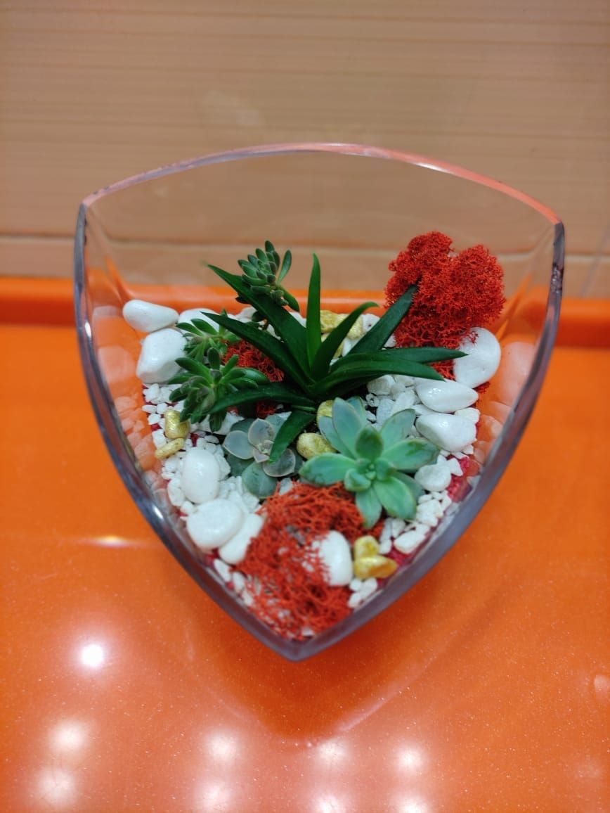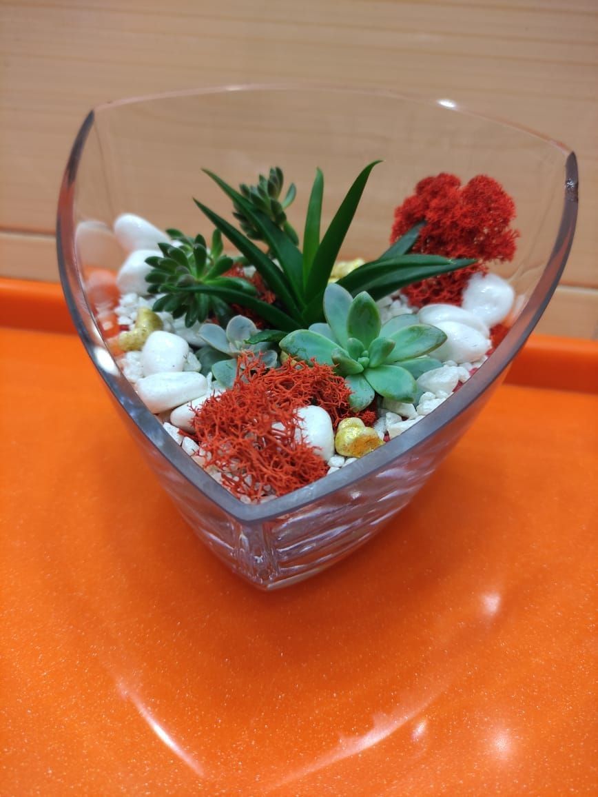 К суккулентам относятся кактусовые, толстянковые, агавовые, ластовненые, лилейные, молочайные и аизооновые растения. Оформление в изящные и минималистичные геометрические формы из стекла и металла, украшенные разноцветными камнями и песком, флорариумы легко впишутся в любой интерьер, благодаря возможности создания совершенно любой композиции.