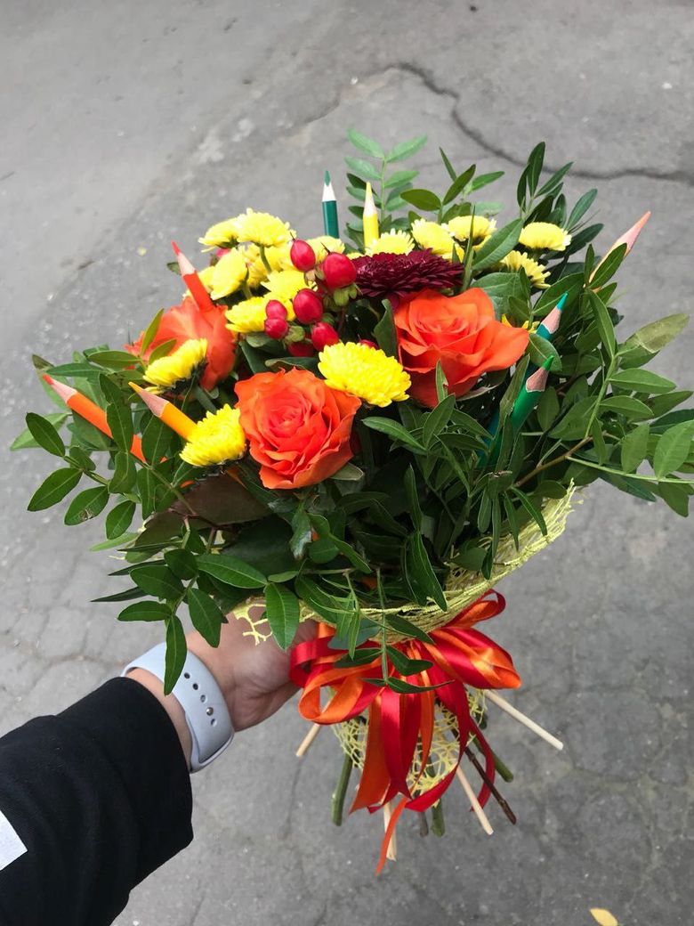 Салон цветов "Бутоньерка" предлагает всем мамам и папам, бабушкам и дедушкам позаботится о цветах на День знаний заранее. Наши флористы с удовольствием создадут осенний букет или композицию для торжественной школьной линейки. Любой букет при желании можно оформить дополнительными предметами, например, лентами, шишками, овощами и фруктами. Конечно, вовсе не обязательно, чтобы букет имел непременно осеннее настроение. Вы можете выбрать любую цветовую гамму и любые цветы: гортензии, кустовые розы, ирисы, ромашки, хризантемы, орхидеи, пионы, герберы, эустому.
