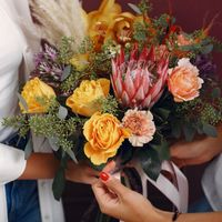 По-настоящему сочные осенние букеты — отдельный вид флористического искусства. Подсолнухи, гладиолусы, георгины, астры, физалис и хризантемы — все они прекрасны как по-отдельности, так и в сочетании друг с другом или с чем-то более классическим, вроде роз, гербер и альстромерий.