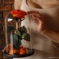 Стабилизированная роза - удивительный подарок. Она сохраняет внешний вид бутона до 5-ти лет, не требуя полива и солнечного света. При этом лепестки не осыпаются.