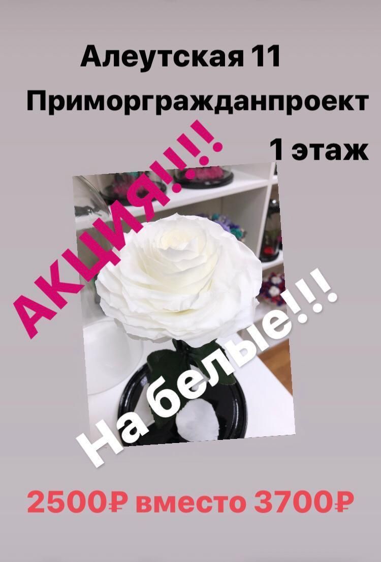 В связи с переездом у нас действует акция - белые розы King Size стоят 2500 рублей вместо 3700. Торопитесь, предложение ограничено!
