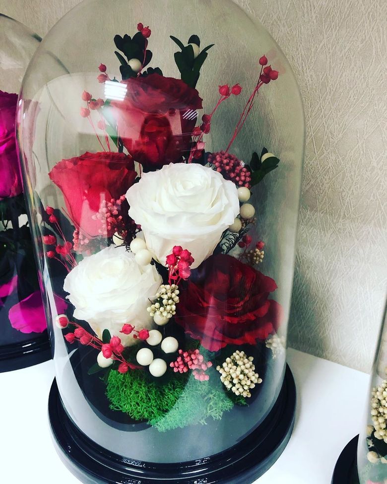 Цветочные композиции в колбе в последние годы стали очень популярным интерьерным элементом и вариантом для подарка на любой праздник. Композиции из стабилизированных цветов украсят дом и создадут в нём сказочную атмосферу. Сочетание изысканных роз, мха, полевых цветов и декоративных растений стилистически поддержат любой дизайн помещения.