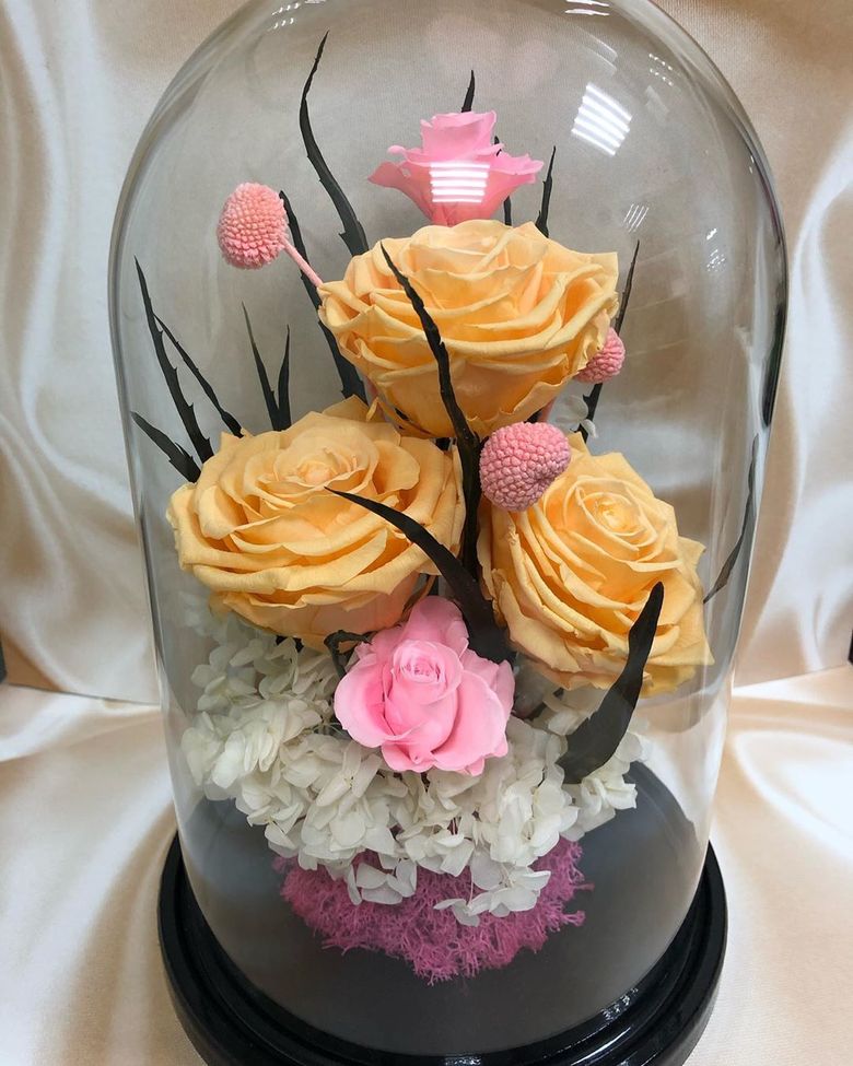 А вот стабилизированные цветочные композиции будут радовать Вас как минимум 3 года. Миниатюрный букет в колбе простоит ещё дольше и станет отличным комплиментом для особенного для Вас человека. Роза, оформленная в стиле мультфильма "Красавица и чудовище", станет отличным декоративным элементом для любого интерьера.