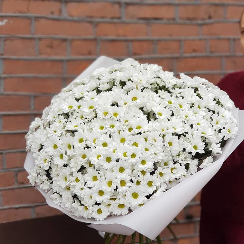 А пока ромашки в пути, мы подготовили примеры букетов из 25 ромашковых хризантем. По предварительному заказу - всего 80 рублей. Количество ограничено.