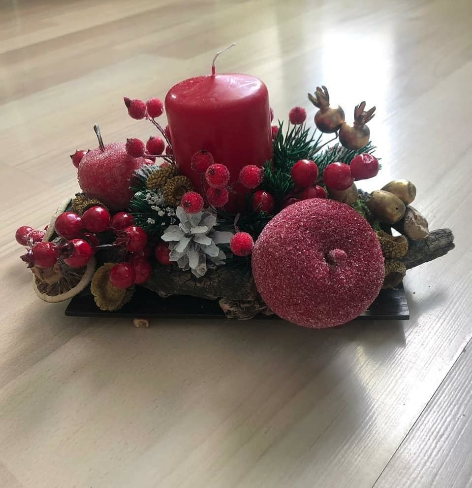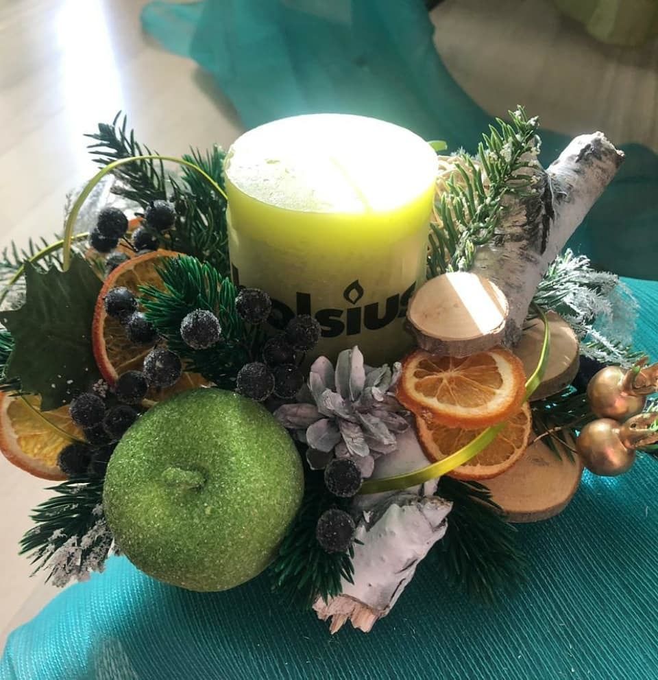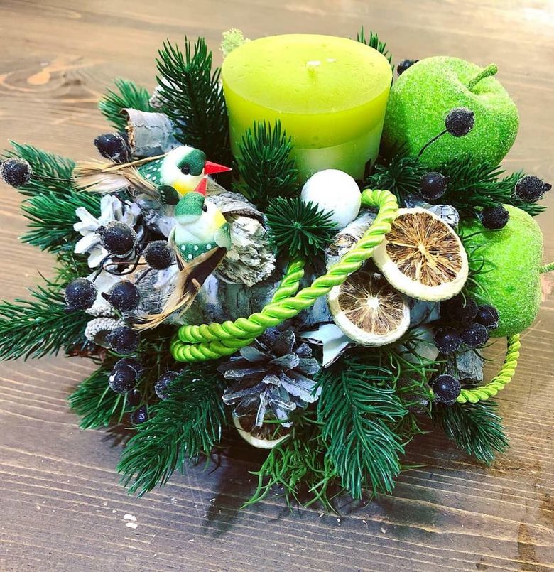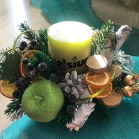 В квартире мало место для ёлки с игрушками или хочется подарить что-то оригинальное близким? Решение салона "Цветочный дворик" - настольные композиции в рождественской и новогодней стилистике. Даже в самом формальном и сером офисе сочетание ярких фруктов и веточек ели, окружающих ароматическую свечу, создаст атмосферу праздника. Делаем композиции в любой цветовой гамме и выбираем фурнитуру по Вашим пожеланиям.
