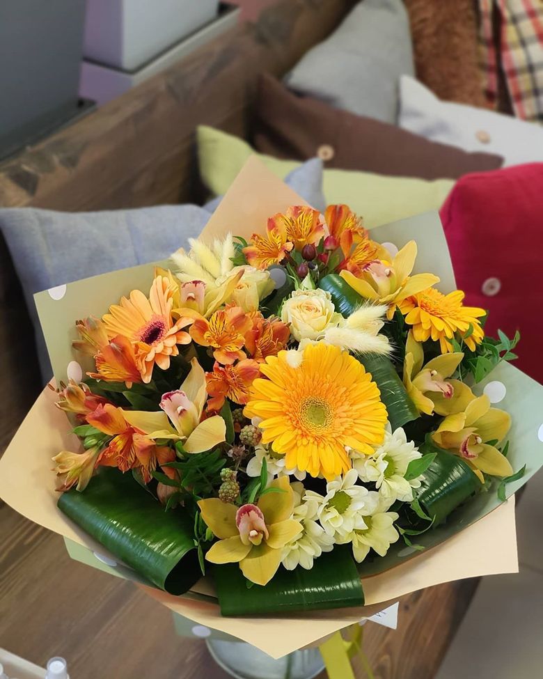 Корпоративный или деловой букет - сдержанный цветочный комплимент ко дню рождения вашего коллеги.