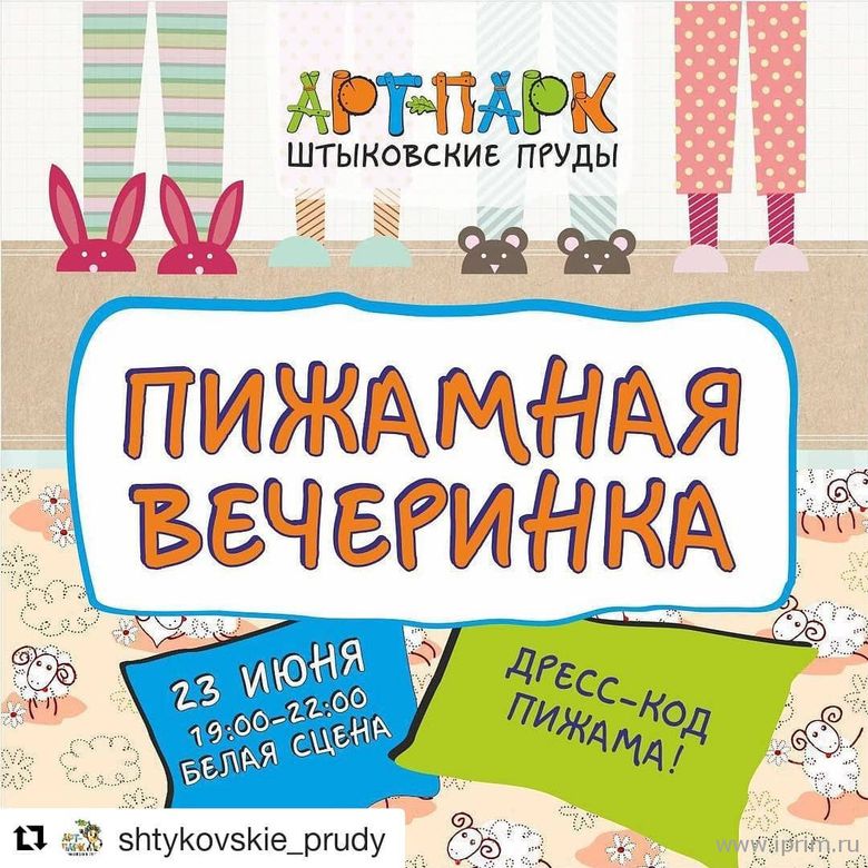 Арт парк "Штыковские Пруды" как всегда на высоте, и в этот раз они решили устроить пижамную вечеринку с призами и конкурсами. Конечно же, там будут и сертификаты на пижамы компании "Кигуруми ВЛ"!