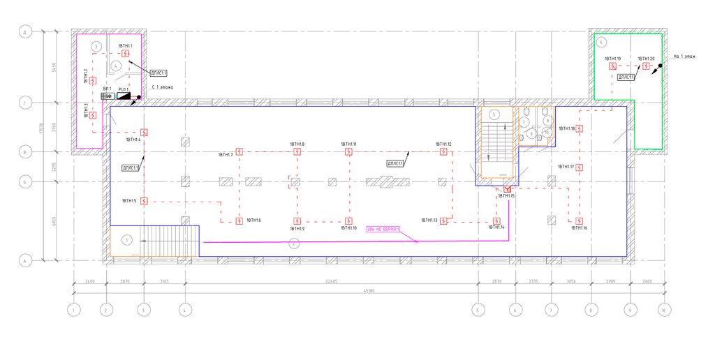 Кроме соблюдения предельного расстояния от ИПР до выхода из помещений, необходимо соблюдать и расстояние между самими ИПР, которое по регламенту не должно превышать 45 м.