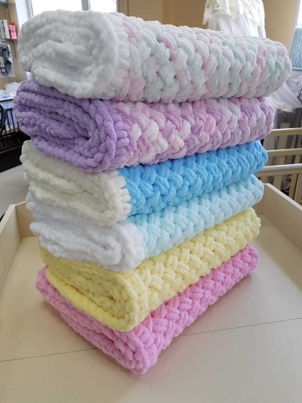 Плед для новорожденного в наличии. Пледик связан из гипоаллергенной пряжи Alize Puffy, созданной для самых маленьких. Такой плед станет идеальным решением, если Вы ищете подарок к рождению малыша, так как он не только красив, но и многофункциональный: его можно использовать как конверт на выписку, как коврик для игр, как покрывало в кроватке или в коляске, можно положить в автокресло.