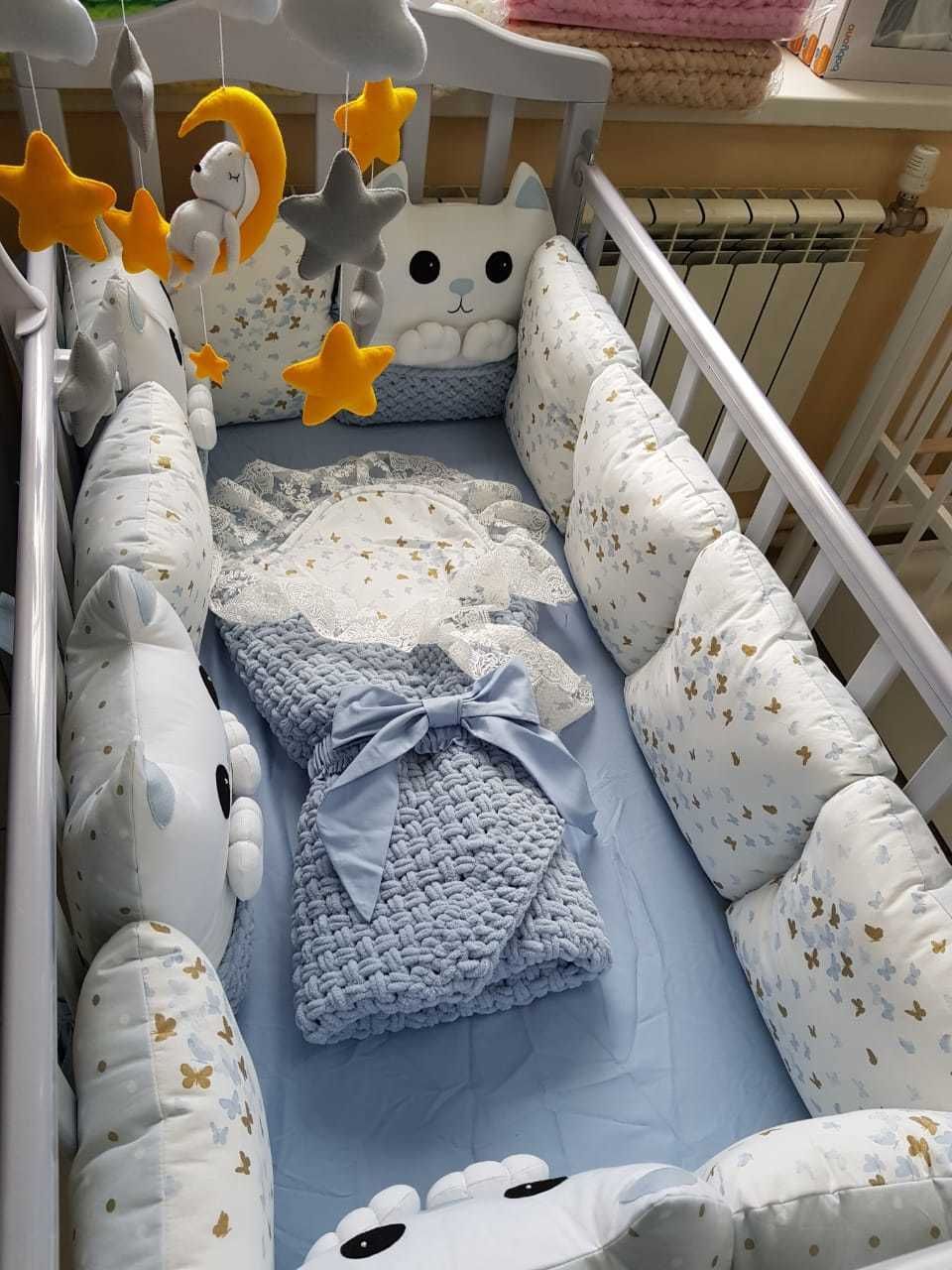 Эксклюзивный комплект ручной работы «Кошки в лукошке» из ткани сатин-премиум. Стоимость комплекта 10 200 рублей.