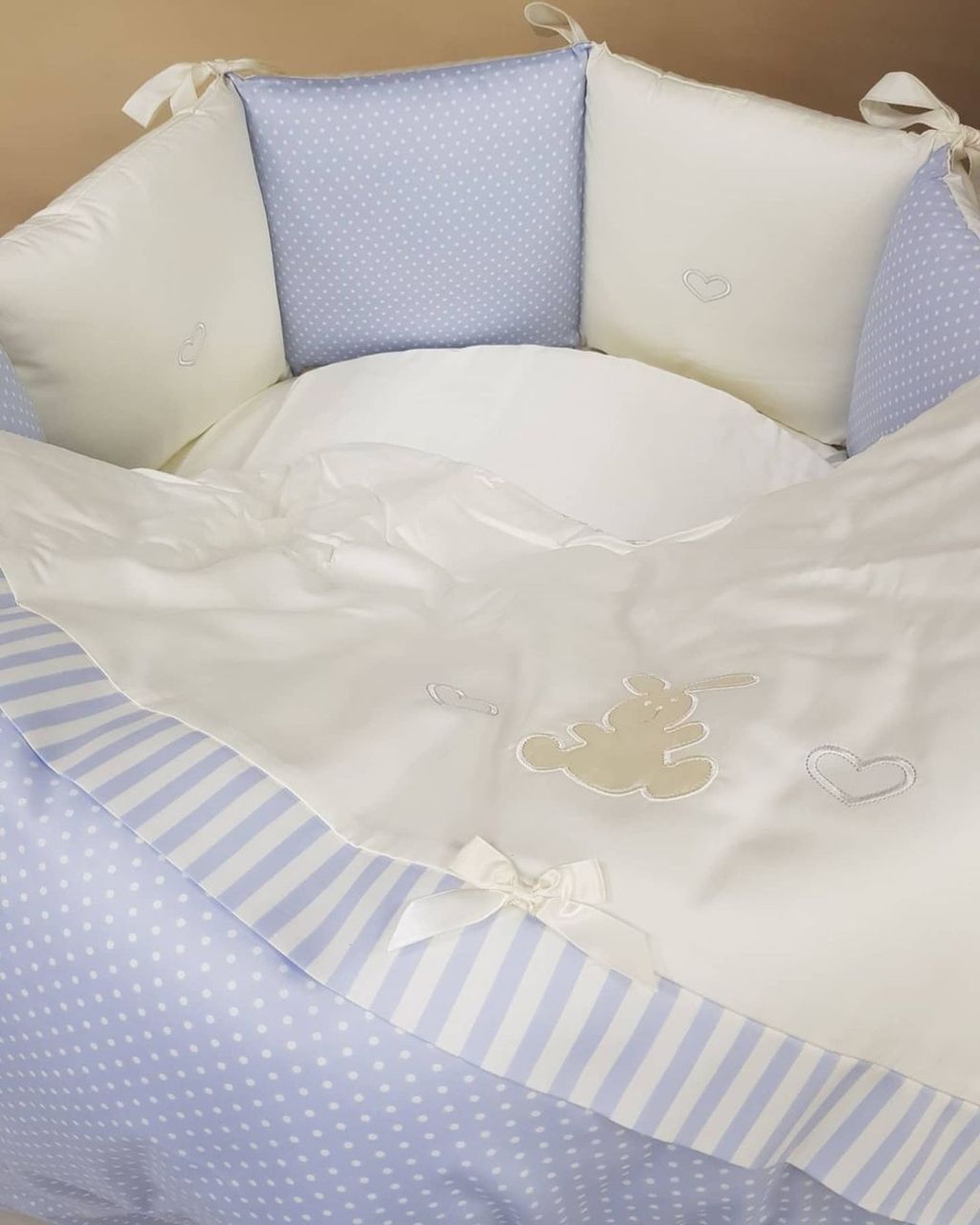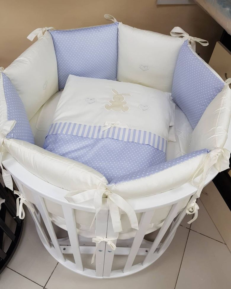 Для дополнительного удобства бампер сделан из отдельных частей со съемным чехлом. Теперь вы легко можете стирать только внешнюю часть бампера, не затрагивая наполнитель. Наполнитель бампера - экологически чистый, гипоаллергенный и легкий материал Hollcon. Этот материал прекрасно сохраняет форму.
