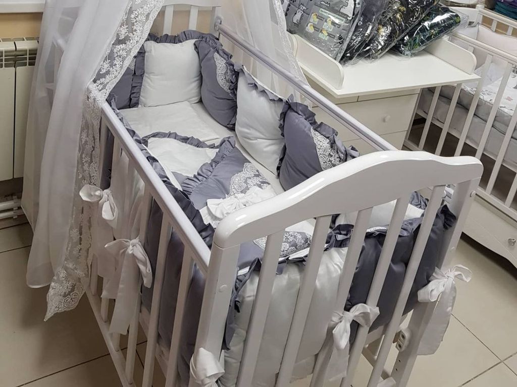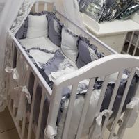 Множество подушек, входящих в комплект, позволят создать для ребенка уютное и безопасное гнездышко. Стопроцентный хлопок не вызовет аллергических реакций на нежной коже, а балдахин поможет укрыть кроватку малыша от внешнего мира.