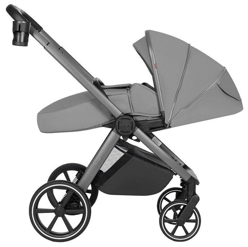 Люлька изготовлена из высококачественных комбинированных материалов, включая многослойный текстиль, обеспечивающий комфортный микроклимат внутри. Конструкция люльки позволяет снизить вес изделия и облегчает ее складывание. Панорамное и климатическое оконца способствуют комфортным прогулкам в жаркую погоду. В холодное время года предусмотрен дополнительный вкладыш у изголовья и плотное укрытие с высоким защитным экраном.