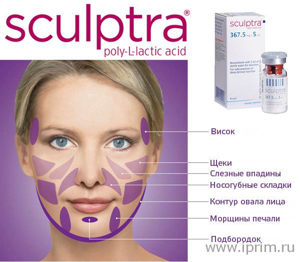 С помощью Скульптры можно увеличить скулы, щеки, подбородок, восполнить недостаток объема в височной области, откорректировать овал лица. Другими словами, препарат придаст вашему лицу более молодой вид и поможет восстановить не только утраченный объем, но и подтянуть овал лица.