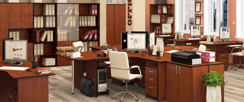 Некрасивая казённая мебель в офисах надоедает сотрудникам и разочаровывает посетителей. Приобрести комфортную и современную мебель для персонала государственных и частных учреждений всегда можно в салоне "Роскомплект". Модели, представленные в наших каталогах - это тщательно подобранные по техническим и эргономическим характеристикам предметы интерьера, образующие гармоничный комплект в одном помещении.
