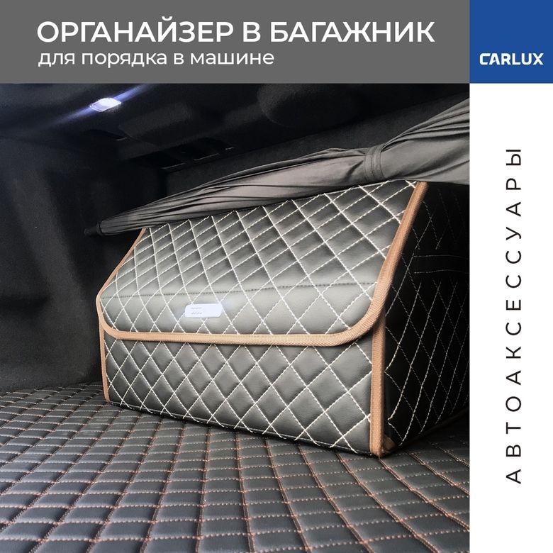 Как правило, большинство автолюбителей постоянно возят в багажнике всевозможные предметы первой необходимости. Всё это занимает много места и катается по всему отсеку туда-сюда. А что, если сложить все это в специальный органайзер? Выйдет не только практично, но и стильно, ведь органайзер выполнен из экокожи. На заднем сиденье автомобиля будет смотреться в самыи? раз, а с нашими чехлами так тем более!