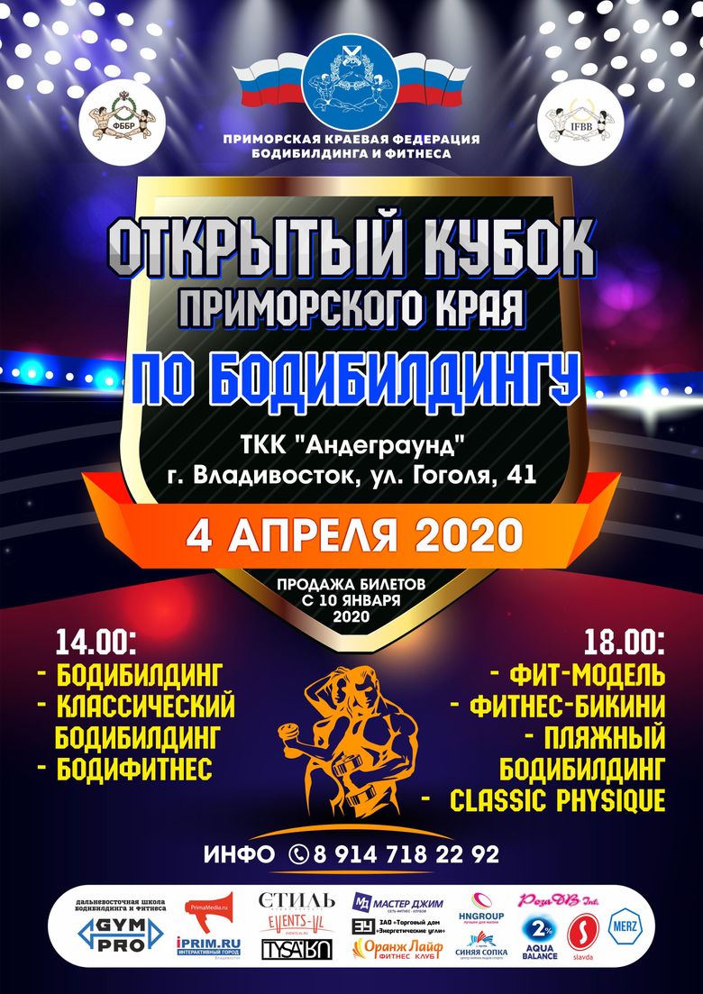 4 апреля 2020 года во Владивостоке состоится "Открытый кубок Приморского края по бодибилдингу". Это один из крупнейших турниров на Дальнем Востоке, собирающий большое количество как участников, так и зрителей!