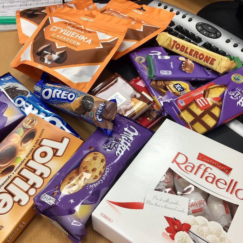 - тёмный, молочный и белый шоколад с оригинальными наполнителями и декором от Bucheron, Rich, Schogetten, Sobranie, Alpen Gold, Milka, Ritter Sport, Бабаевский и Коммунарка;