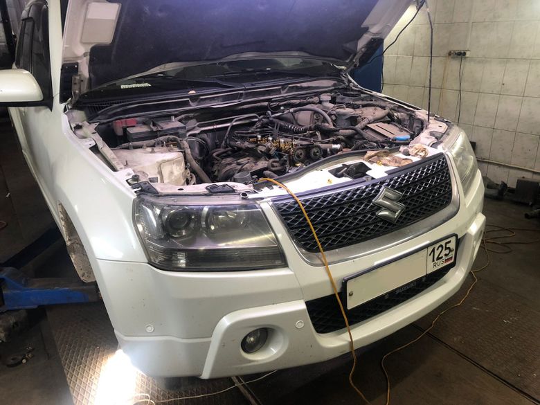 Suzuki Escudo с мотором J20A заехал в автосервис "Респект" на регулировку зазоров клапанов и замену цепи ГРМ со всеми натяжителями, успокоителями и башмаками. Дополнительно с согласия владельца автомобиля специалисты автосервиса также выполнили замену маслосъемных башмачков.