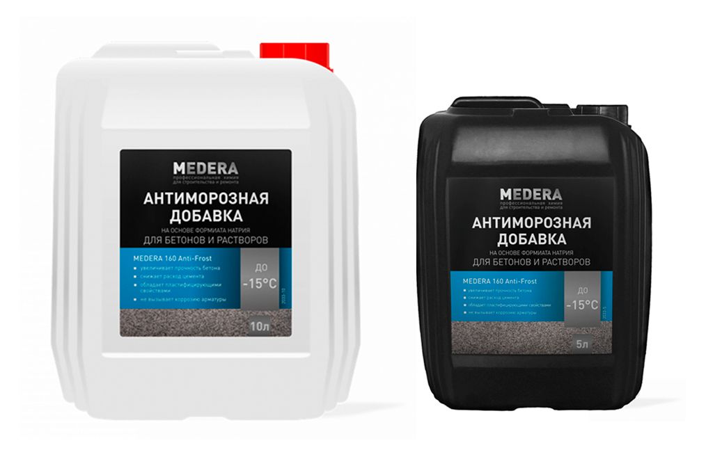 Антиморозная добавка для бетонов и растворов MEDERA 160 Anti-frost -15 — это жидкий готовый к применению препарат.