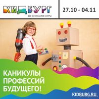 В настоящий момент "КидБург" запускает каникулы профессий будущего, которые продляться с 27 октября по 5 ноября!