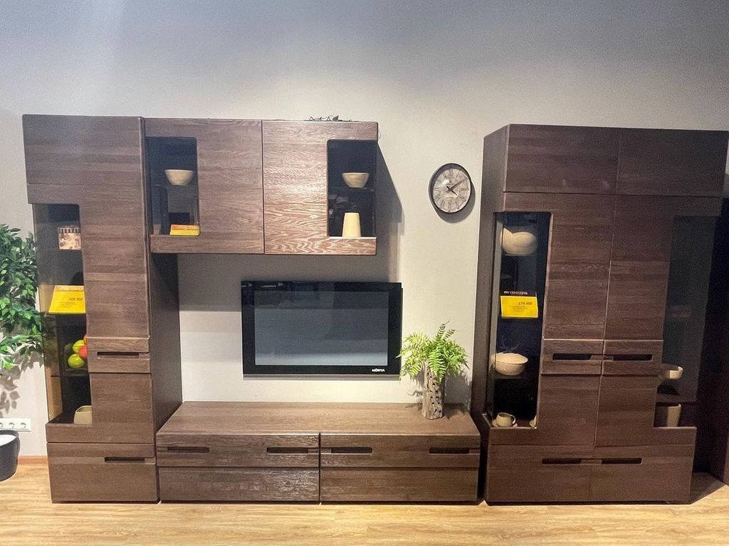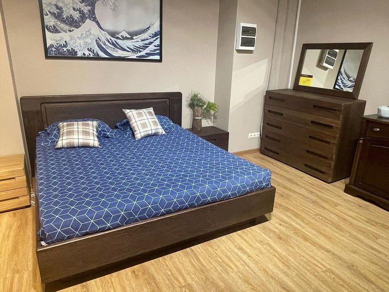 На фотографиях представлен не весь ассортимент мебели, попадающий под акцию: кровать, комод, прикроватные тумбы, кухонный стол, полки и тумбы под TV.