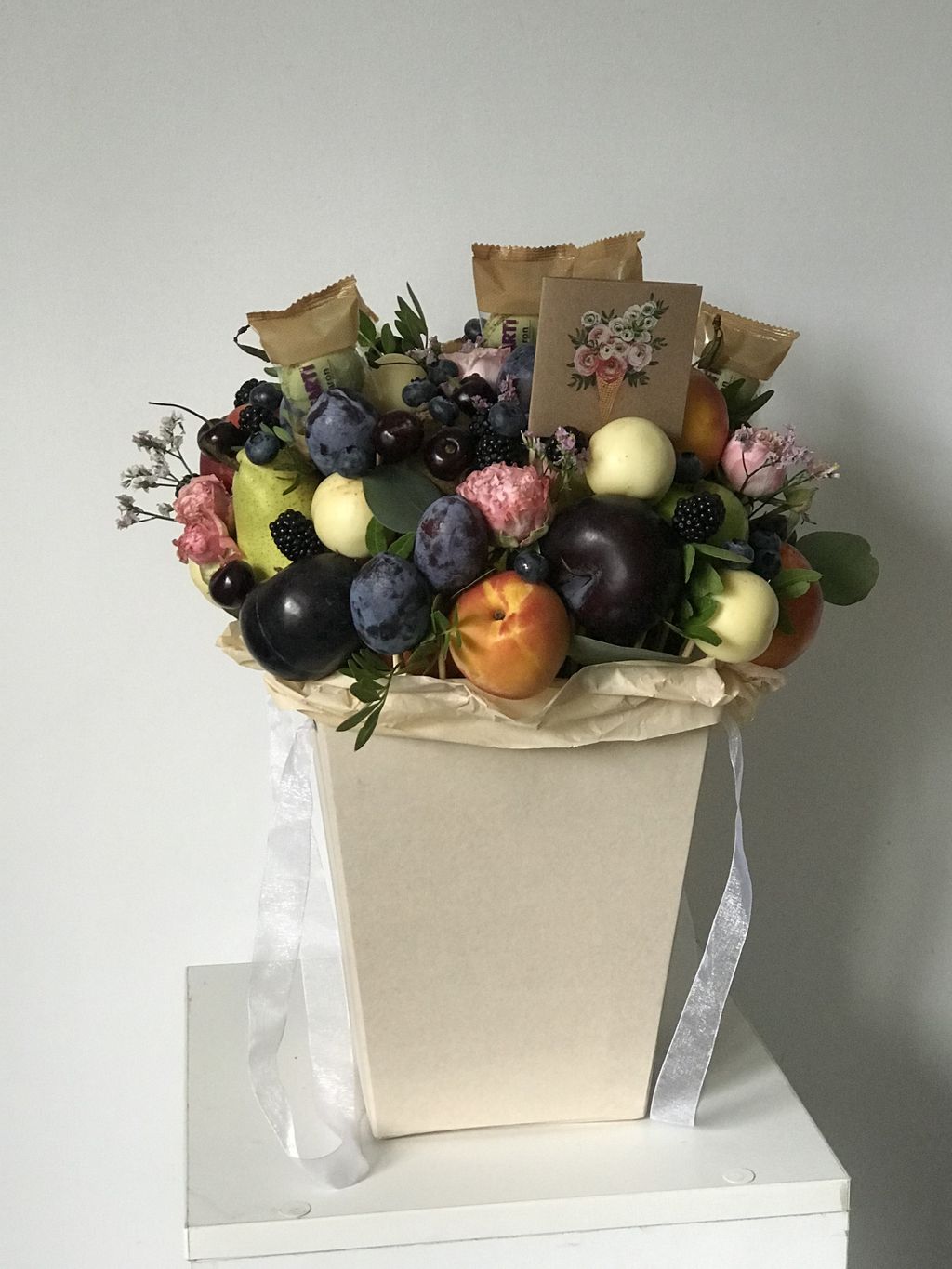 Возможно ваша мама любит фрукты? Тогда порадуйте ее фруктовым букетом, коробкой или корзиной. А если сладости и хороший кофе/чай порадуют ее больше всего, тогда мы с радостью соберем подарочную коробку именно для нее, учитывая все предпочтения.